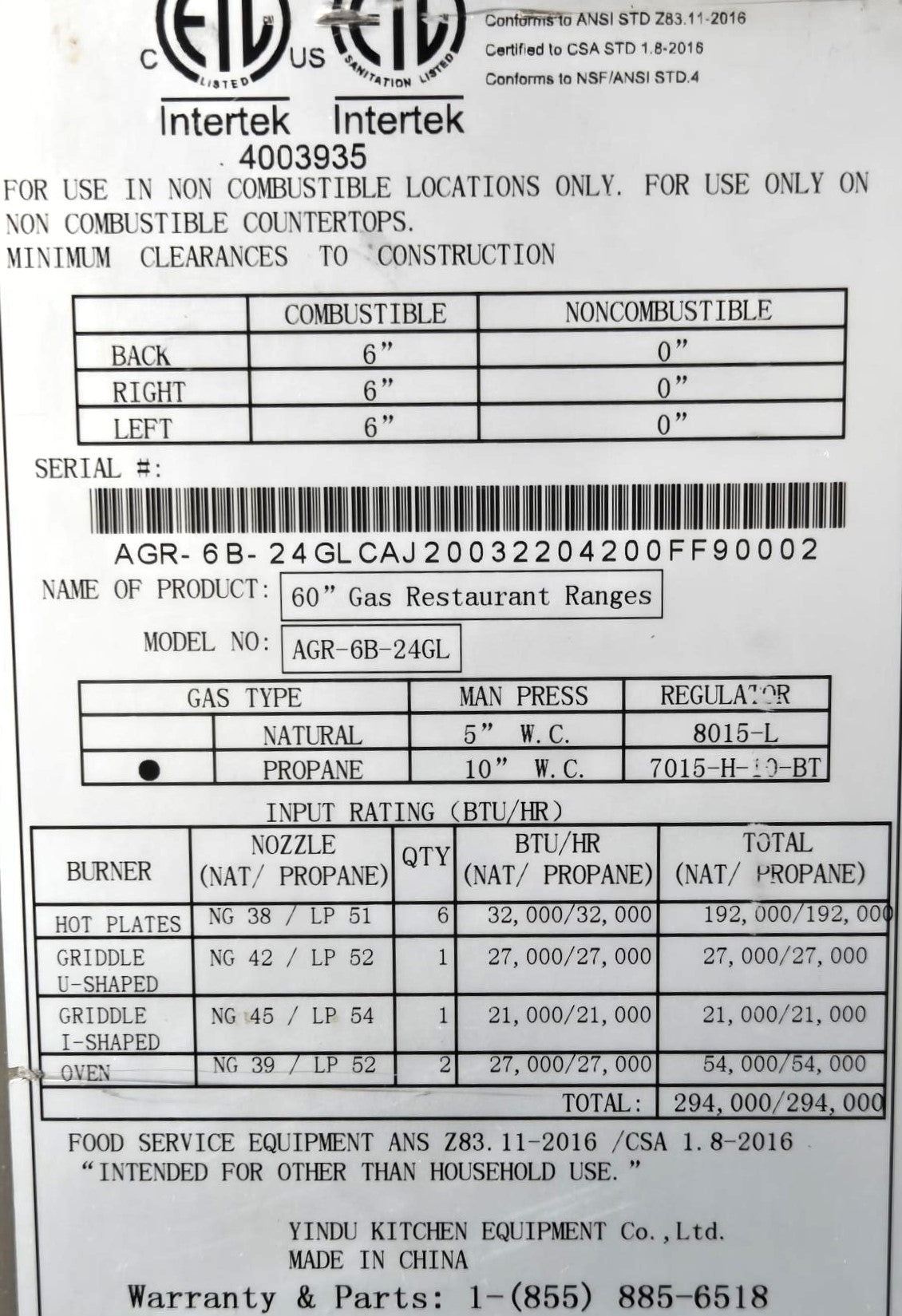 Atosa AGR-6B-24GL Range - 60 Inch - Propane