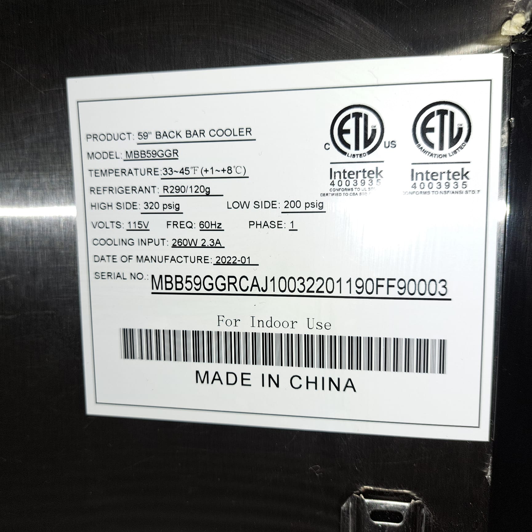 Atosa MBB59GGR Refrigerated Back Bar Cabinet