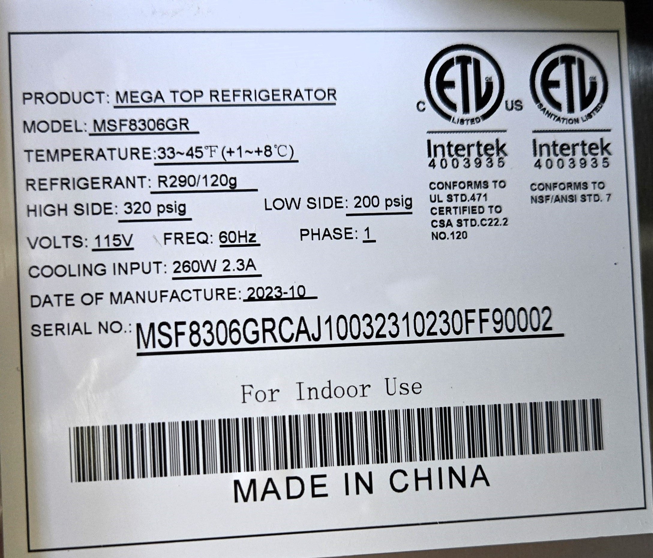Atosa MSF8306GR Sandwich Mega Top Refrigerator