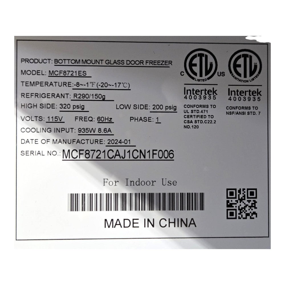 Product | Upright Freezer – 2 Door (Broken window on left bottom inside trim) |