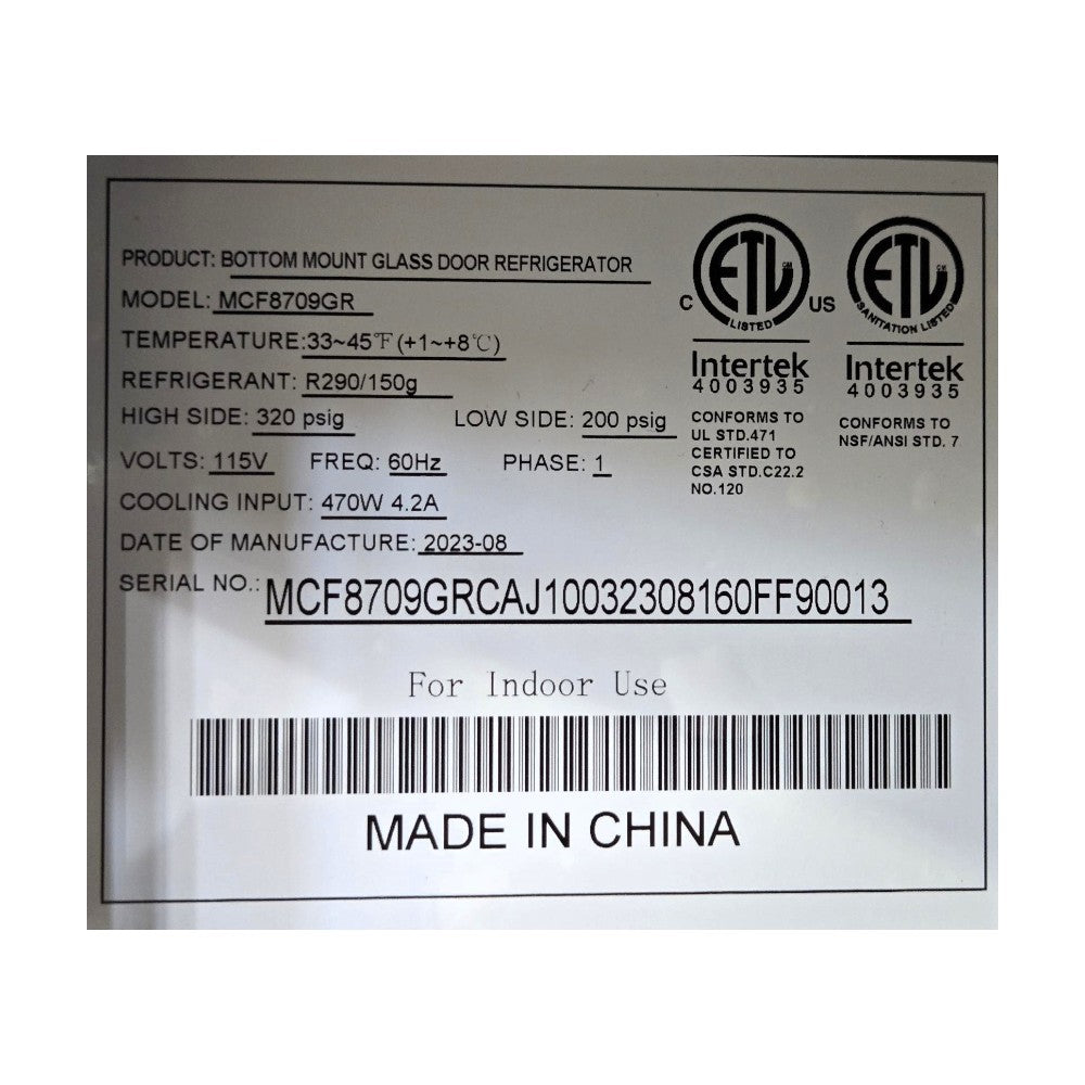 Atosa MCF8709GR Bottom Mount Refrigerator - 2 Sliding Doors