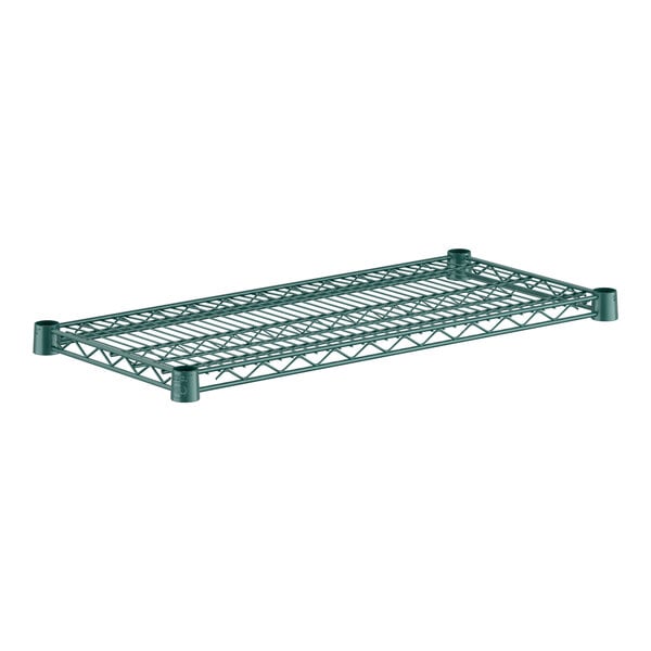 Heavy-duty wire shelving unit measuring 24" wide by 48" long with a durable green epoxy coating that resists corrosion and wear. Ideal for warehouses, storage facilities, and industrial environments where reliable organization is essential. The epoxy finish provides superior protection against moisture and chemicals while maintaining a professional appearance. Minimum order quantity of 4 units. Perfect for maximizing vertical storage space in demanding applications.