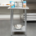 Professional-grade stainless steel worktable engineered for demanding commercial kitchen environments. This 30" x 30" unit features a durable galvanized steel undershelf for secure storage and reinforced legs designed to withstand heavy daily use. The seamless stainless steel work surface resists corrosion, staining, and bacterial growth, making it ideal for food preparation, assembly, or general workspace applications. Built for reliability and easy maintenance in high-volume operations.