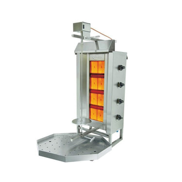 Introducing our premium Vertical Broiler, Donair Machine, and Shawarma Machine, expertly designed for culinary enthusiasts and food service professionals alike. Crafted with all stainless steel construction, this equipment ensures durability and easy cleaning, making it ideal for busy kitchens. The machine features an enclosed motor for enhanced safety and performance, while its versatility allows for use with either natural or propane gas. Additionally, extra spits and a meat shovel are available to further enhance your cooking experience. With a voltage requirement of 110 V, this machine seamlessly integrates into your kitchen setup. Elevate your food offerings with this essential piece of equipment that combines quality, efficiency, and style.