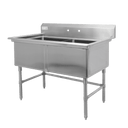 Double sink unit featuring a 24" x 24" footprint with integrated drain board positioned on the left side, ideal for commercial kitchens requiring efficient dishwashing workflows. The left-mounted drain board allows seamless transition from washing to air-drying, maximizing counter space and workflow efficiency. Constructed for durability in high-volume food service environments, this configuration supports dual-basin operations while maintaining compact dimensions. Perfect for restaurants, catering facilities, and institutional kitchens seeking reliable, space-conscious washing solutions.