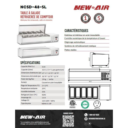 New Air NCSD-48-SL Refrigerated Countertop Salad Table