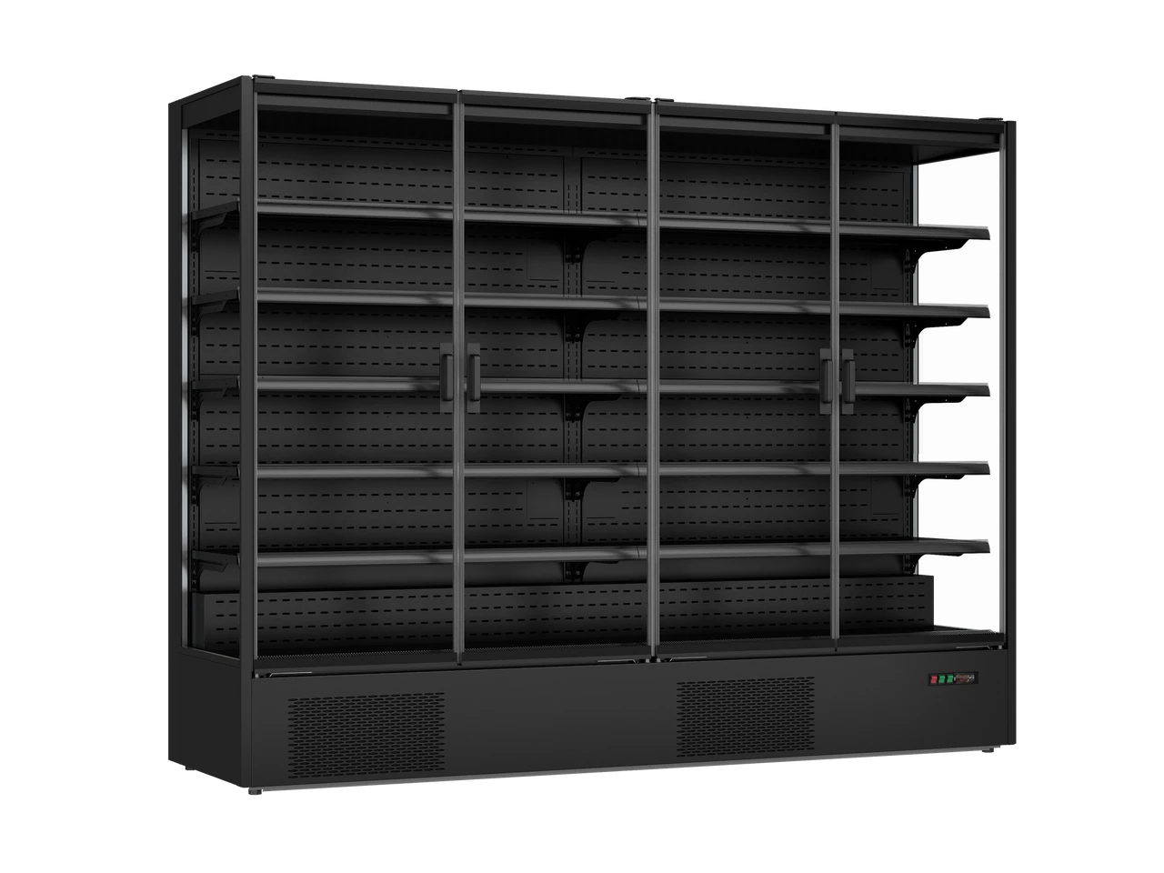 - Frameless anti-glare glass doors and side glass panels for 360° product visibility