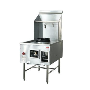 Omcan Single Chamber Wok Range with a 13" Ring, Backsplash, Faucet, Natural gas 95,000 BTU - 48411