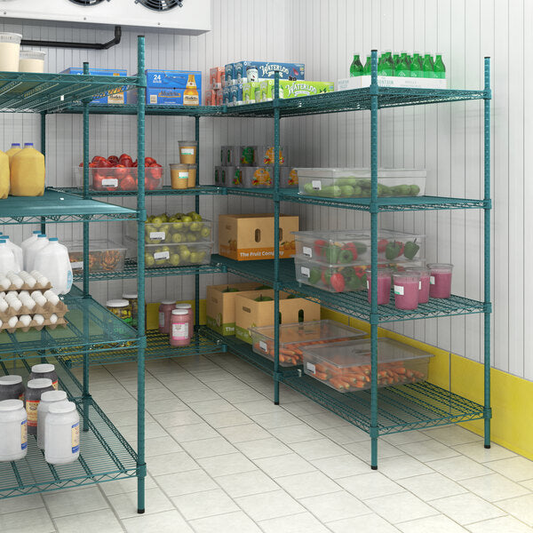 Durable green epoxy-coated S hooks designed for heavy-duty hanging and storage applications. This set of two hooks features a robust construction that resists corrosion and wear, making them ideal for commercial kitchens, workshops, and industrial environments. The epoxy coating provides superior protection against moisture and chemicals while maintaining a professional appearance. Easy to install and capable of supporting substantial loads, these S hooks offer reliable performance for organizing equipment