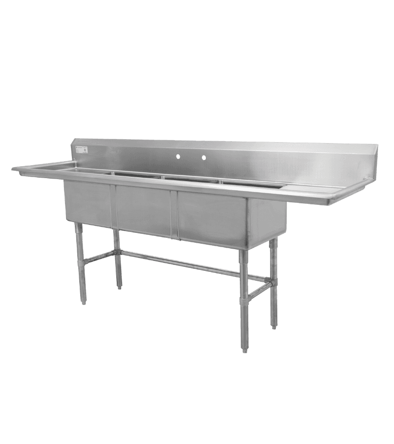 Thorinox TTS-1818-R18 TRIPLE SINK 18" x 18" WITH LEFT DRAINBOA